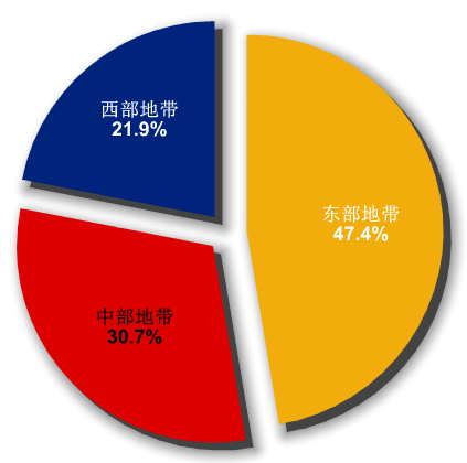 按經濟地域分布統計,1月份我國東部地區中標金額18.8億美元,同比增長22.6%,金額占比47.4%,中標項目數量1152個;中部地區中標金額12.2億美元,同比下降4.7%,金額占比30.8%,中標項目數量367個;西部地區中標金額8.7億美元,同比下降19.5%,金額占比21.9%,中標項目數量239個。