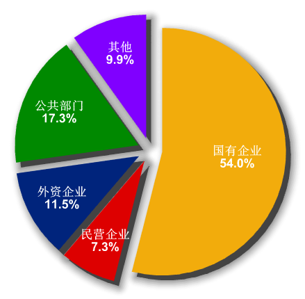 按照機電產品國際招標企業性質統計,截止到9月份,國有企業機電產品國際招標累計中標金額180億美元,同比下降3%,占機電產品國際招標中標總金額的53.9%;項目數量4653個,與上年同期相比下降14.8%。其中,國有獨資企業累計中標金額94.7億美元,同比增長3.6%;項目數量2313個,與上年同期相比下降13.6%。國有絕對控股企業累計中標金額66.9億美元,同比增長30.6%;項目數量1661個,與上年同期相比下降3.7%。國有相對控股企業累計中標金額18.4億美元,同比下降57.1%;項目數量679個,與上年同期相比下降35.8%。