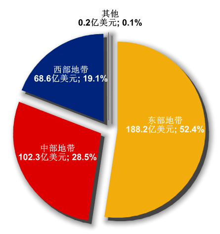 據(jù)統(tǒng)計,2020年東部地區(qū)機電產(chǎn)品國際招標中標金額188.2億美元,同比下降26.5%,占比52.4%;中部地區(qū)中標金額為102.3億美元,同比下降11.2%,占比28.5%,比上年度提升3.4個百分點;西部地區(qū)中標金額為68.6億美元,同比下降21.6%,占比19.1%。